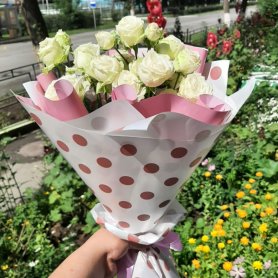 Нежность живых, свежих кустовых роз, оформленных в чудесный, пышный букет, заставляет сердце трепетать от восторга и переизбытка чувств. Каждый букет уникален, поэтому возможно отличие по наполнению, цветовой гамме и упаковке от представленного на фото.