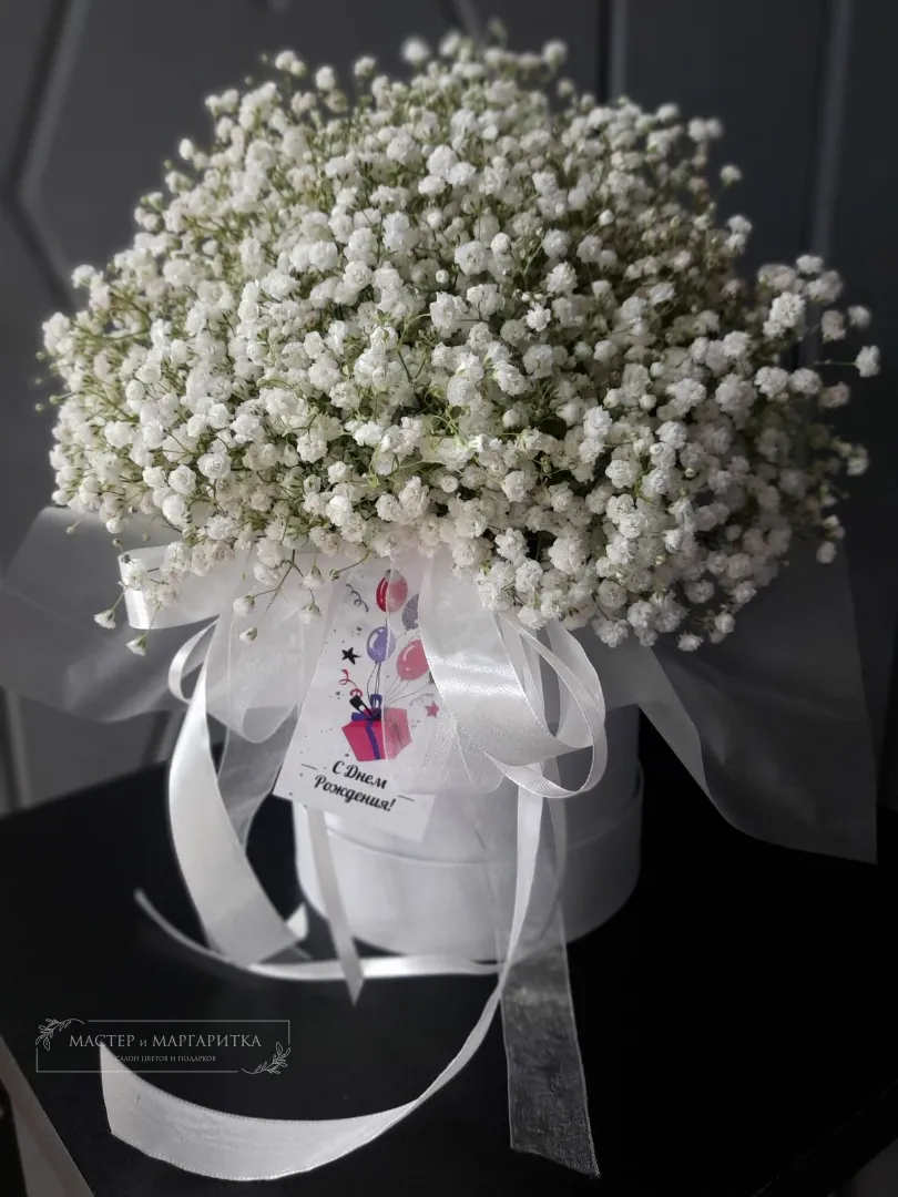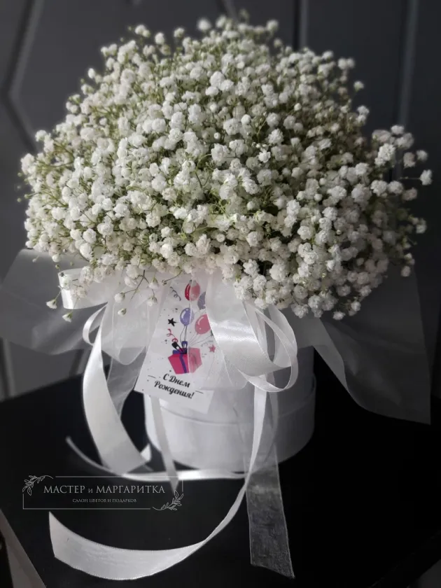 Шляпная коробка «Безмятежность» станет элегантным подарком для любителей утонченной красоты. В состав композиции входит нежная гипсофила, создающая атмосферу спокойствия и уюта. Этот букет прекрасно подчеркнет ваш особый случай или станет приятным дополнением к интерьеру. Идеально подходит для выражения искренних чувств и подарка с душой.